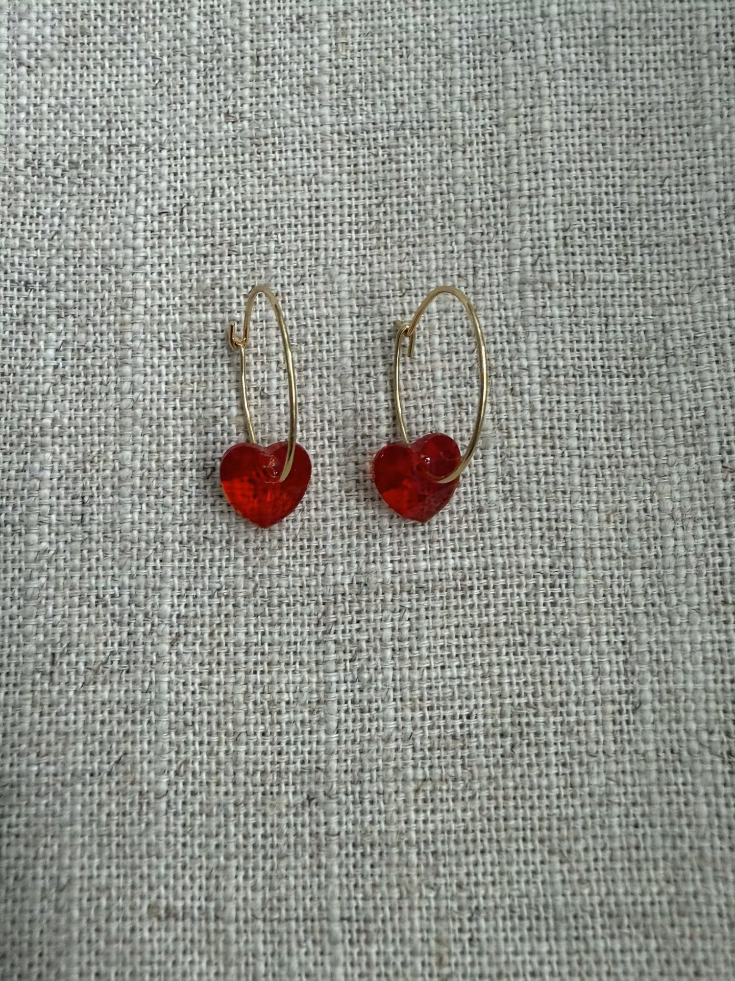 FYND – Örhängen, röda hjärtan 0 kr 50 kr Örhängen med facetterade glashjärtan. Ringar i nickelfri metall.
