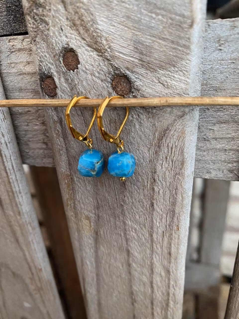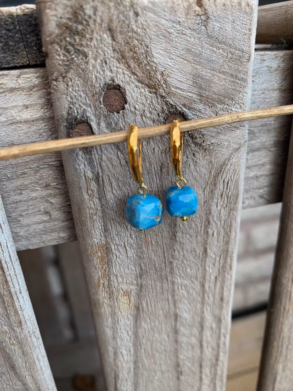 Örhängen – Apatit 0 kr 129 kr Örhängen med 8 mm små facetterade kuber av apatitÖppningsbara öronkrokar av nickelfri, guldfärgad metall.Alla stenar är olika och färgskiftningar förekommer.